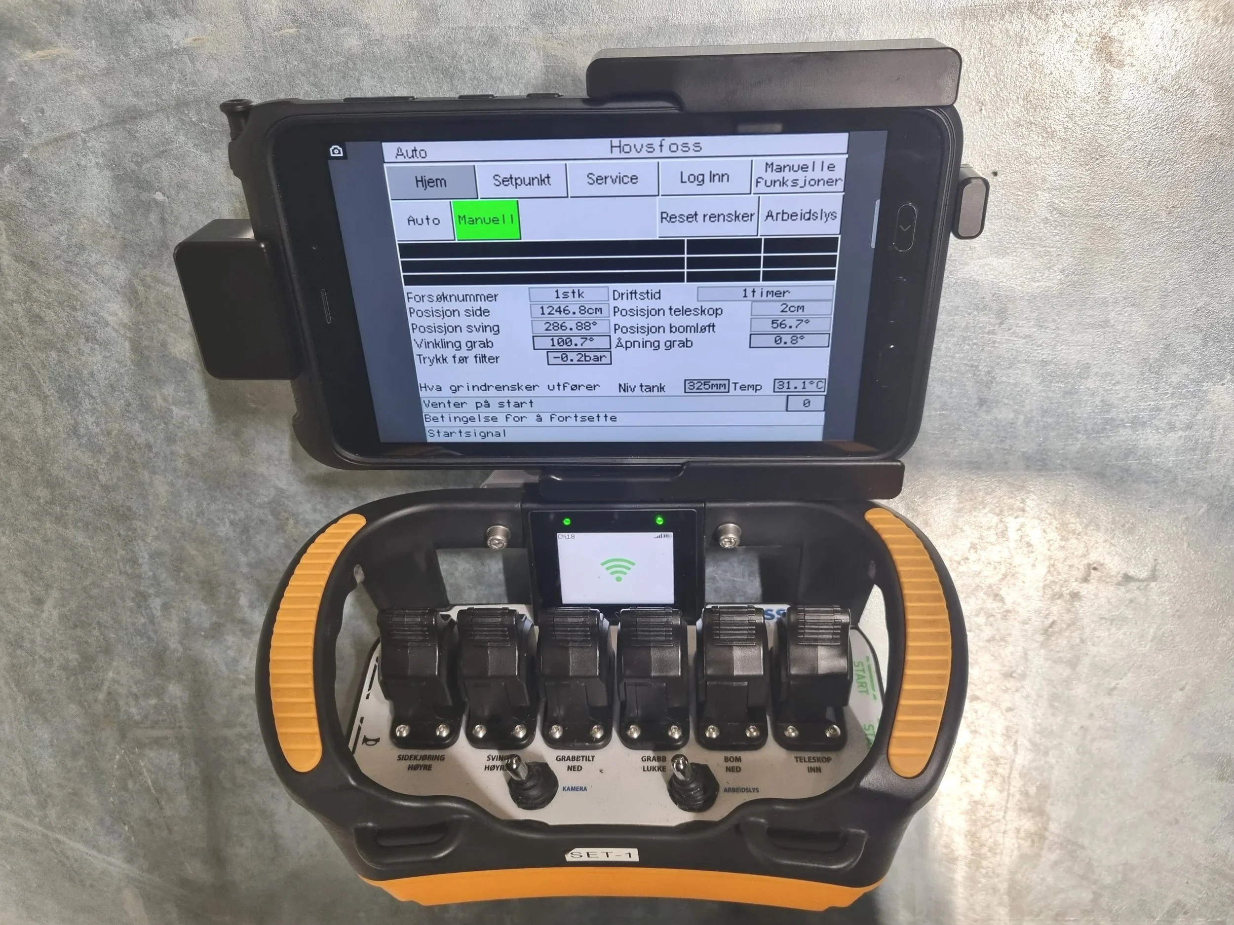 Under visse driftsituasjoner er det nødvendig å kunne ha mulighet til å kjøre våre grindrenskere manuelt med fjernkontroll. Alle våre modeller kan leveres med fjernkontroll hvor alle funksjoner kan betjenes fra.
